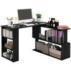 360° Rotating Home Office Corner Desk and Storage Shelf Combo L-Shaped Table