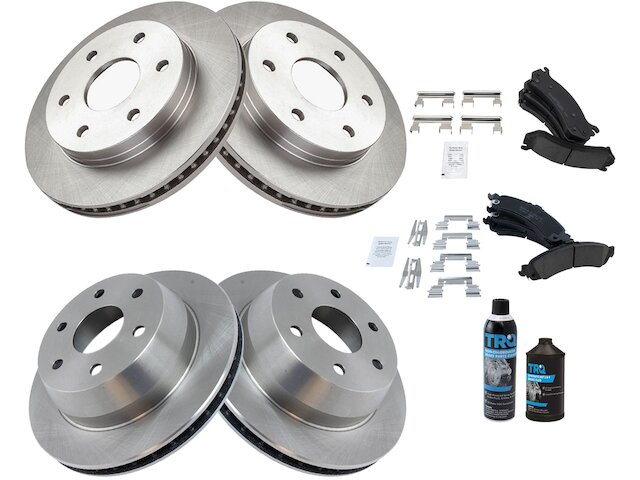 Package Contents: (2) Front Brake Rotors; (2) Rear Brake Rotors; (1) Front Ceramic Brake Pad Set; (1) Rear Ceramic Brake Pad Set; (1) Brake Cleaner & Fluid Kit