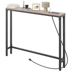 HOOBRO 39.4 Inch Narrow Console Table with Power Outlets, 5.9 Greige + Black