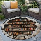 Bookshelf Patterned 3D Illusion Round Rug, Printed 3D Carpet Floor Mat Decor