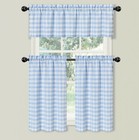 Country Farmhouse Blue Plaid Gingham 3 Pc Kitchen Curtain Tier & Valance Set