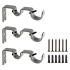 3PCS Grey Curtain Rod Bracket, Heavy Duty Double Curtain Rod Hanging Brackets...