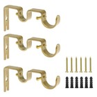 3PCS Gold Curtain Rod Bracket, Heavy Duty Double Curtain Rod Hanging Brackets...
