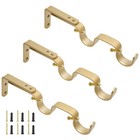 3PCS Gold Curtain Rod Bracket, Adjustable Heavy Duty Double Curtain Hanging B...
