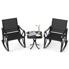 3 Piece Patio Rocking Set 2 Rocking Chairs w/ Tempered Glass Side Table Black