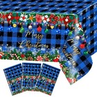 3Pcs Merry Christmas Buffalo Plaid Gingerbread Party Tablecloths,Plastic Red ...