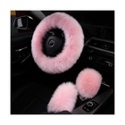 3Pcs Set Fashion Fluffy Fuzzy Wool Fur Soft Car Steering Wheel Long Wool Pink