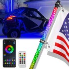 RGB Spiral 3ft Led Lighted Whip Antenna W/Flag & Remote For Polaris ATV UTV RZR