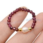 3mm Natural Red Garnet Faceted Gems Beads White Pearl Adjustable Stretch Rings