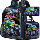 AGSDON 3PCS Kids Backpack for Boys, Trucks Bookbag with Lunch Box for Kids 6-...