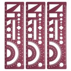 3pcs Multifunctional Geometric Rulers 15cm Metric and SAE Math Ruler, Dark Red