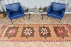 Vintage Herki Rug 2,7x11,4 ft, Pink Orange Abstract Wool Turkish Rug