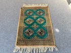 Vintage Afghan Bokhara Rug 3x4 ft Handmade Wool Rug Green Tribal Geometric Small
