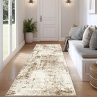 2x8 Runner Rug Washable Brown Beige Modern Abstract Neutral Non Slip Low Pile...