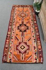 Turkish Vintage Rug, 3x7,5 ft Kilim Rug, Red Orange Animal Print Rug