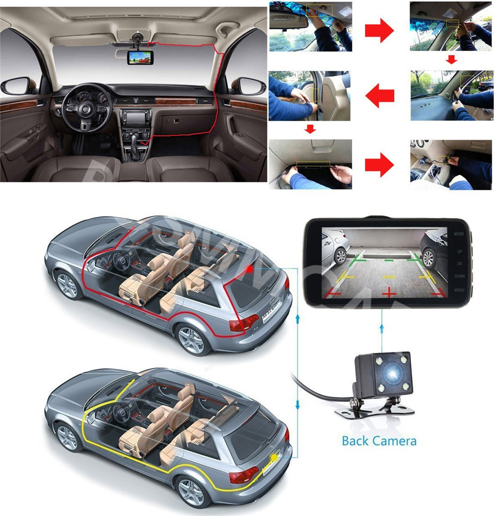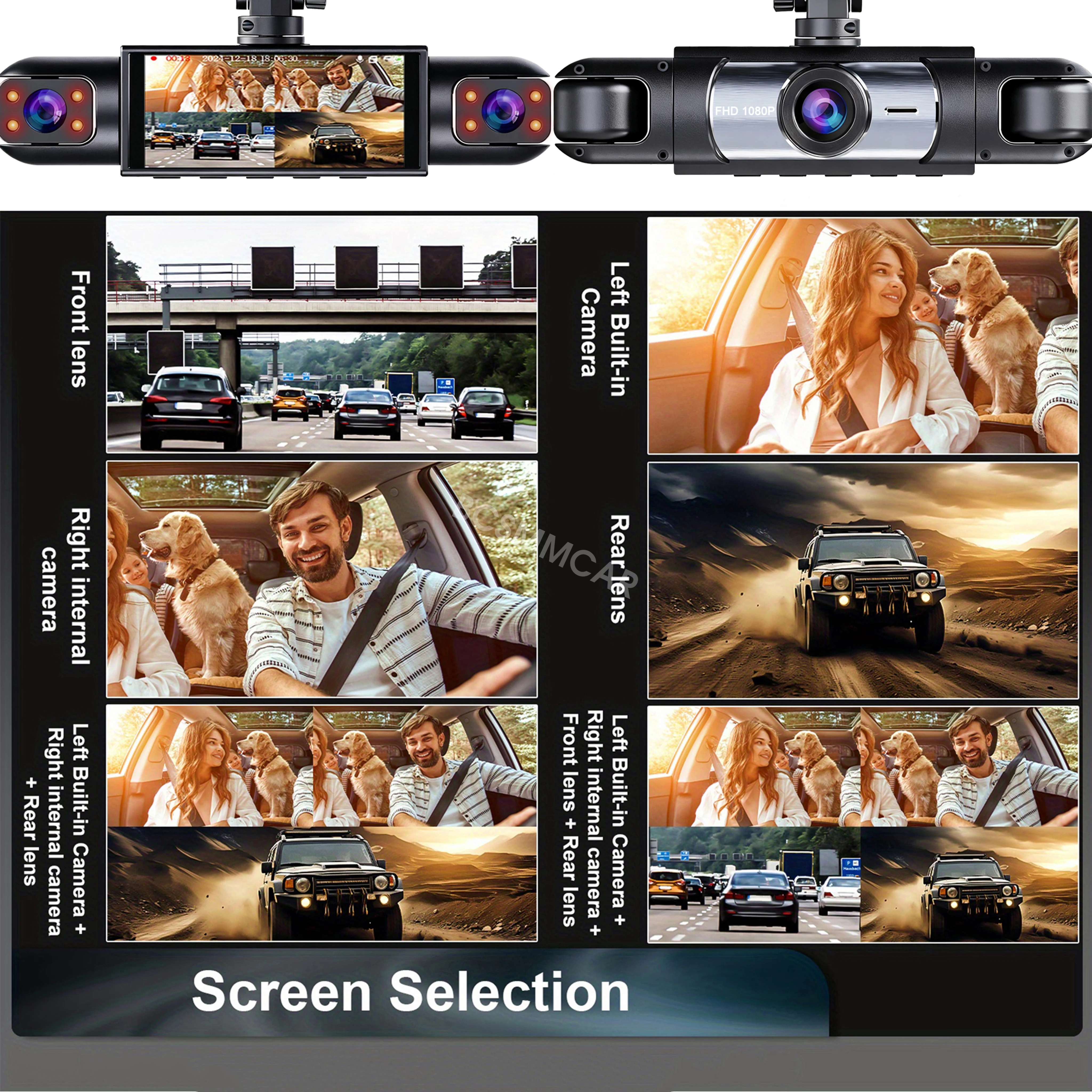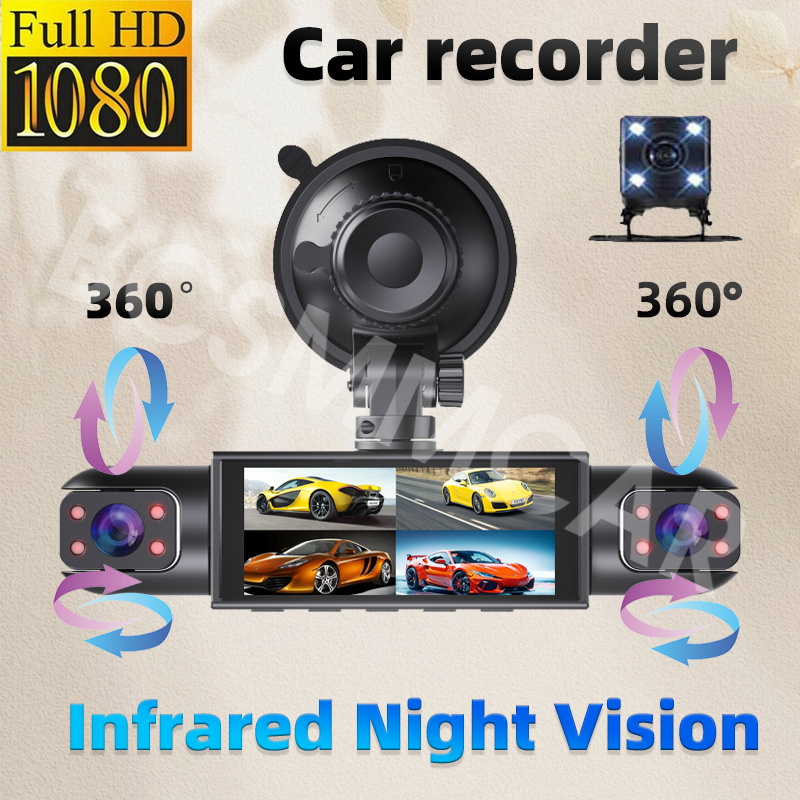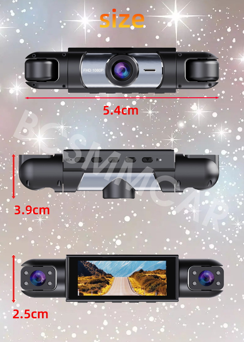 1080P FHD DVR camera is composed of a front lens, a left lens, a right lens, and an optional rear lens to cover as many as possible directions when you drive.
