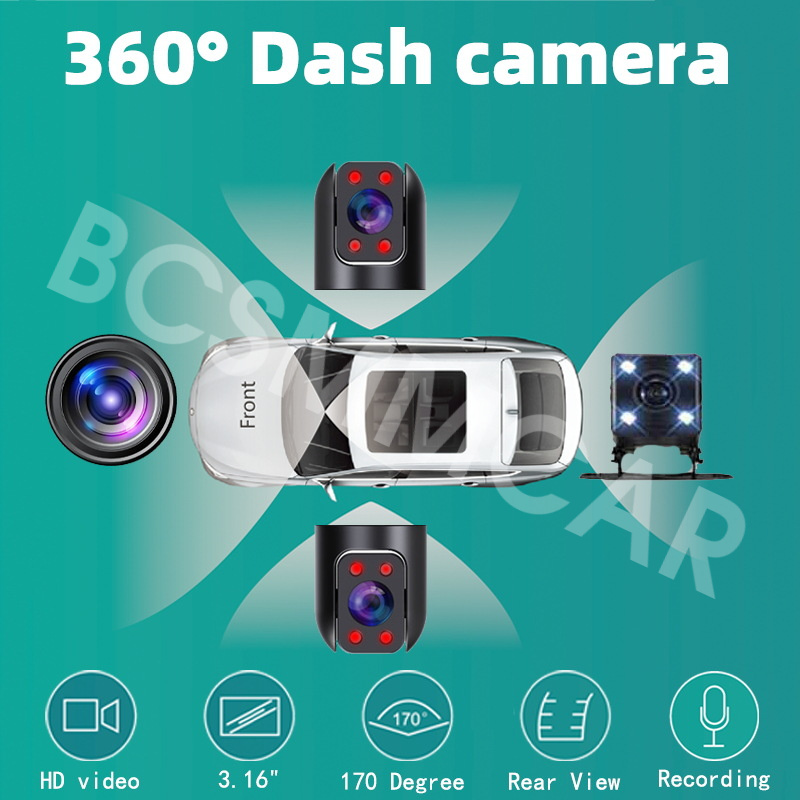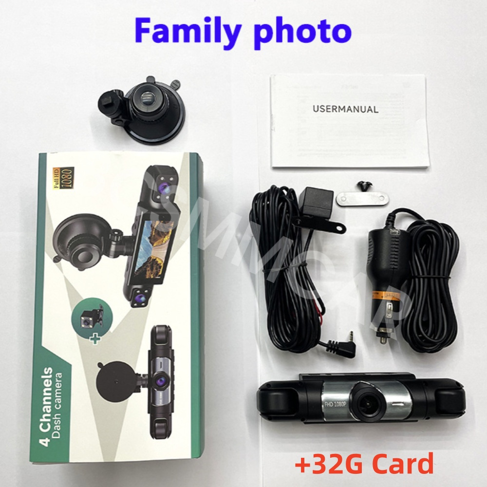 4 Lens Car Dash Cam 4 Channel DVR Driving Recorder 1080P Front Left Right Rear Night Vision Loop Recording With 32G Card