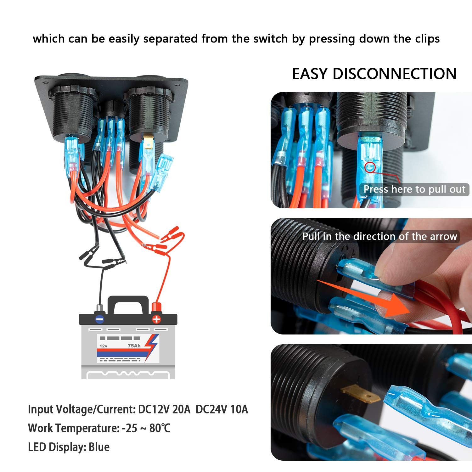 [Safer Design] This switch panel includes reverse polarity and automatic short-circuit protection to prevent potential danger, and wires are protected by waterproof rubber-cover and thicker rubber protection ring to prevent rupture.