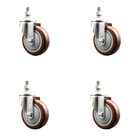 4 Inch 316SS Maroon Polyurethane Wheel Swivel 3/8 Inch Threaded Stem Caster Set