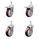 4 Inch Maroon Polyurethane Swivel 10mm Threaded Stem Caster Set 2 Brakes SCC