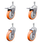 4 Inch SS Orange Polyurethane ½ Inch Threaded Stem Caster Set Total Lock Brake