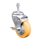 4 Inch SS Yellow Polyurethane Swivel 10mm Threaded Stem Caster with Brake SCC