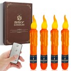 4pcs Orange Real Wax LED Tapered Candles, Battery Operated, Remote Controlled...