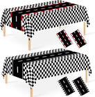 3 Pcs Racing Car Table Cloths Party Decorations, Disposable White Black Racet...