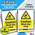 4-Pack Caution Mind The Step Vinyl Sticker Waterproof, UV-Resistant 110mm x 90mm