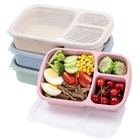 4 Pack Bento Lunch Box Set 3 Compartment Food Storage Containers Wheat Straw ...