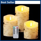 3 Pcs Flameless Birch LED Candles Moving Real Wax Battery Remote Timer
