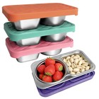 4 Pack Stainless Steel Snack Containers with Lids, 3-Compartments Reusable Lu...
