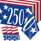 3 Pack 250Th Tablecloths, American Flag Patriotic Theme Disposable Plastic Table