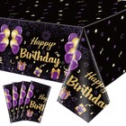 4 Pack Black Purple Happy Tablecloths, 51x87'' Plastic Disposable Rectangle P...