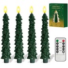 4 Pcs Christmas Tree-Shaped Flameless Taper Candles with Remote and Timer, 9....