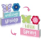 4 Pcs Spring Table Centerpieces Decorations Hello Spring Wooden Table Signs F...