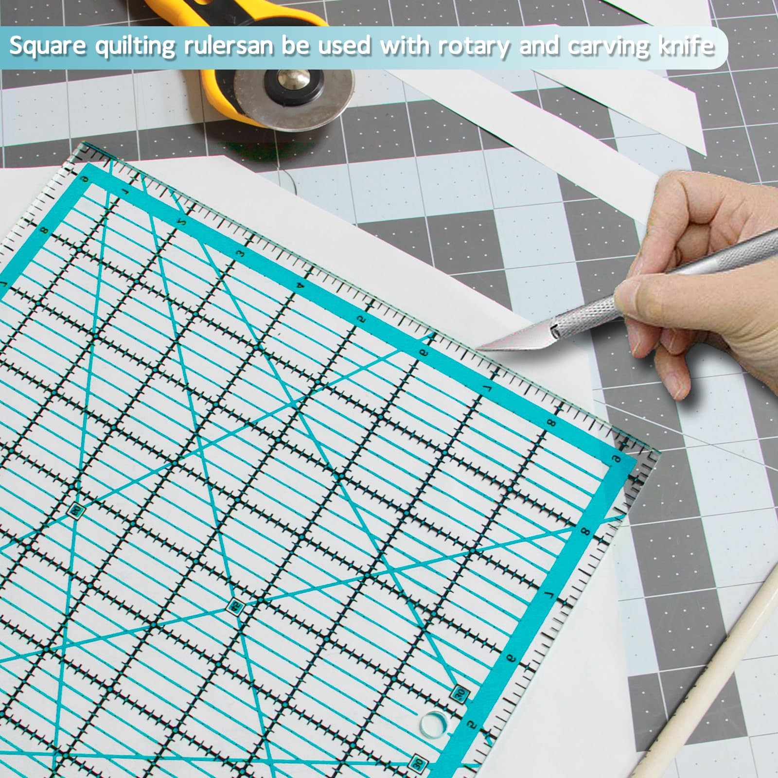 - Square quilting rulers are made from durable acrylic material and designed for quilting, sewing, measuring, drawing, and crafts. Providing a clear view of measurement on light or dark material.