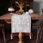 Embroidered Table Runner Boho Farmhouse Dresser Scarf Macrame Rustic Lace Doi...