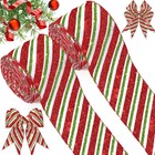 2 Rolls Christmas Peppermint Stripe Ribbon Glitter Wired Candy Cane Fabric Wr...