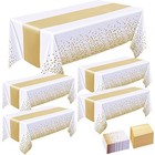 8pack Disposable Plastic Tablecloths And Satin Table Runner Set White And Gold D