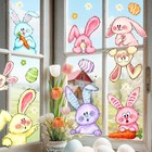 Easter Window Clings Colorful Bunny Daisy Double-Sided Glass Decals Rabbit Fl...