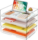 4 Trays Paper Organizer Letter Tray - Acrylic Desk File Organizer, Stackable Cle