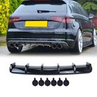 Rear Diffuser Shark Fins Bumper Lip Splitter Spoiler For Audi A3 A4 A5 A6 S3 S4