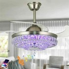 42" Crystal Ceiling Fan 7-Color Light Bluetooth Music LED Chandelier w/Remote