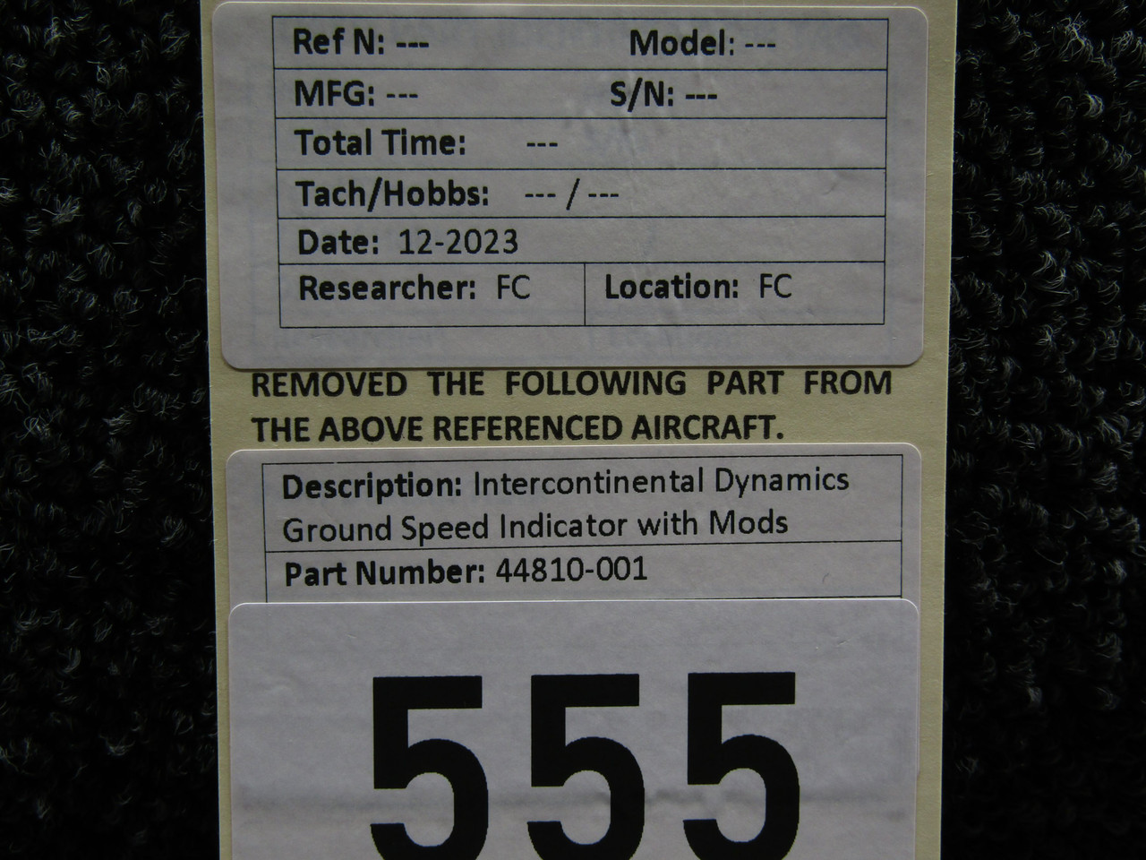 44810-001 Intercontinental Dynamics Ground Speed Indicator with Modifications