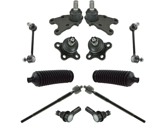 Package Contents: (2) Front Upper Ball Joints; (2) Front Sway Bar Links; (2) Front Outer Tie Rods; (2) Front Inner Tie Rods; (2) Front Lower Ball Joints; (2) Front Steering Rack & Pinion Bellows