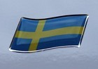 45mm WAVING SWEDEN FLAG Sticker/Decal - WITH A HIGH GLOSS DOMED GEL FINISH