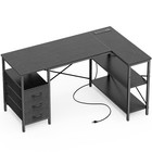47 Inch L Shaped Office Desk with Power Outlets 3 Drawers Shelves Huuger Gaming