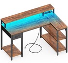 L Shaped Desk 47 inch Reversible with LED Lights & Power Outlets Rustic Brown