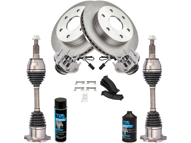 Package Contents: (2) Front Wheel Bearing & Hub Assemblies; (2) Front Brake Rotors; (1) Front Ceramic Brake Pad Set; (2) Front CV Axle Assemblies; (1) Brake Cleaner & Fluid Kit